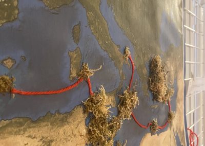 La mostra “Alter–Atlas of Borders. Mappe sensibili di mondi che cambiano”, a cura di Laura Lo Presti, raccoglie una selezione di lavori realizzati da studentesse e studenti dei corsi di Mobility Studies e Geografia dell’Università di Padova, dedicati ai temi del confine – inteso anche come corpo e soglia incarnata –, della migrazione, del movimento e dello spaesamento, letti attraverso le cartografie critiche e umanistiche. Il percorso espositivo presenta piccole installazioni, video-performance e stampe, accompagnate da brevi testi esplicativi in italiano e in inglese.