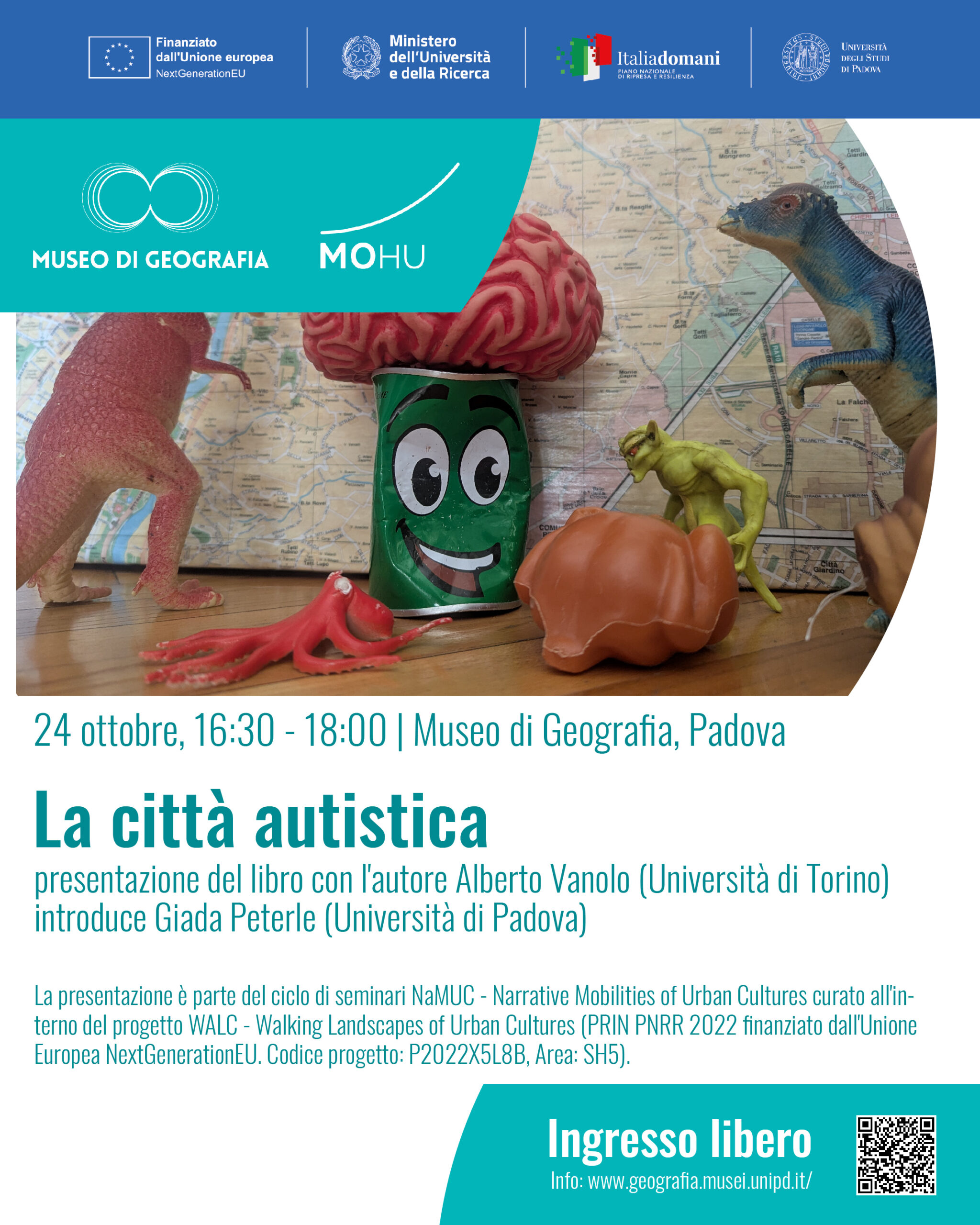 La presentazione è parte del ciclo di seminari NaMUC – Narrative Mobilities of Urban Cultures curato all’interno del progetto WALC – Walking Landscapes of Urban Cultures (PRIN PNRR 2022 finanziato dall’Unione Europea NextGenerationEU. Codice progetto: P2022X5L8B, Area: SH5).