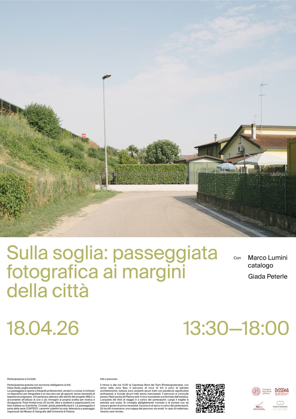Una passeggiata fotografica lungo la Tangenziale Nord di Padova per interpretare uno spazio di passaggio, di transito e pendolarismo, come una soglia tra movimento e radicamento, tra abitanti e passanti, tra la città e ciò che le sta attorno. Un percorso disseminato di testi letterari e spunti fotografici per allenare lo sguardo ad abitare quei luoghi che troppo spesso vengono solo attraversati, dimenticati, posti ai margini delle nostre quotidianità.